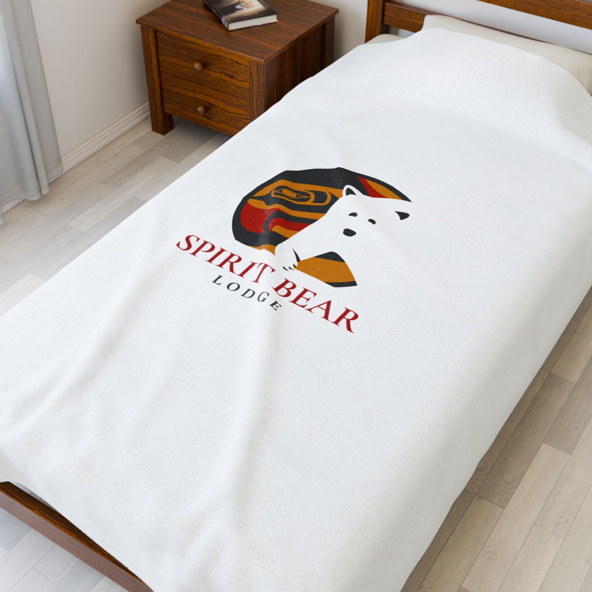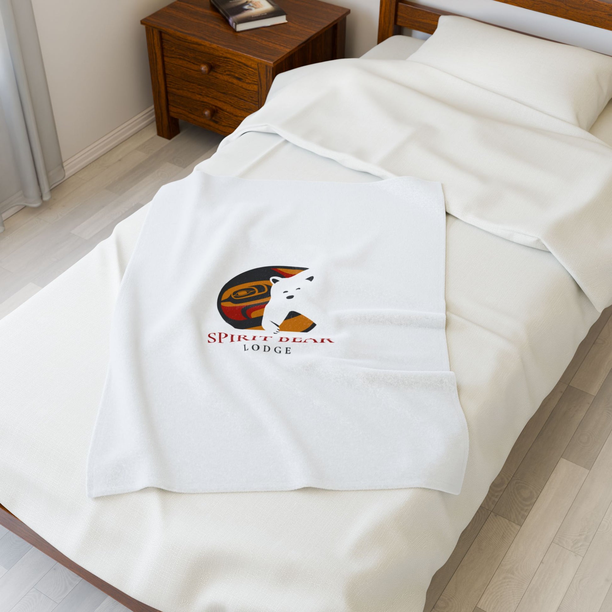 Cozy Velveteen Plush Blanket - Spirit Bear Lodge Design